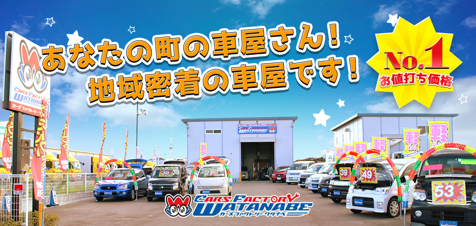 カーズファクトリーワタナベは生活に欠かせない自動車を通して、いつでもお客様のそばで寄り添います。